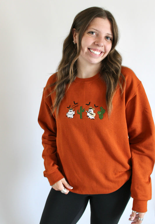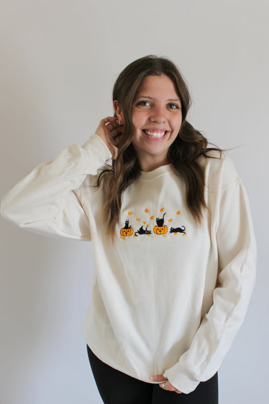 Dancing Jack-o’-lanterns Embroidered Crewneck