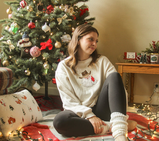 Vintage Cowboy Santa Clause Embroidered Crewneck