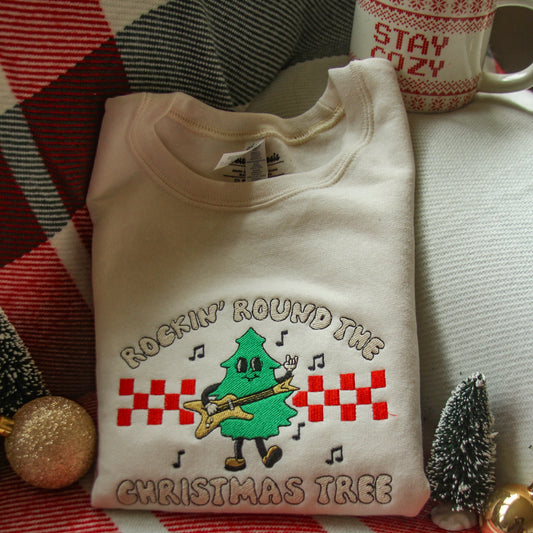 “Rockin’ Round The Christmas Tree Embroidered Crewneck